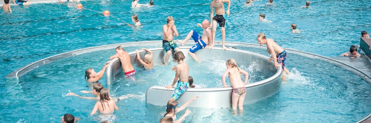 The attractive jungle-style toddler area is a particular highlight. The 29° water in the swimming pool and the 32° water in the toddler pool are perfect for the whole family. Spacious collective cabins, as well as individual changing rooms and baby changing facilities, make this an attractive family pool.
