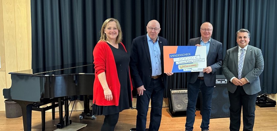 En el tercer Verano Musical de Uelsen se recaudaron 500 euros para la Asociación de Apoyo a la Escuela de Música Niedergrafschaft. Hilde van den Belt, de Uelsen Touristik, y el teniente de alcalde Hajo Bosch entregaron el cheque simbólico a Jan Albers, presidente del grupo de apoyo, y al director Boyan Karanjuloff.