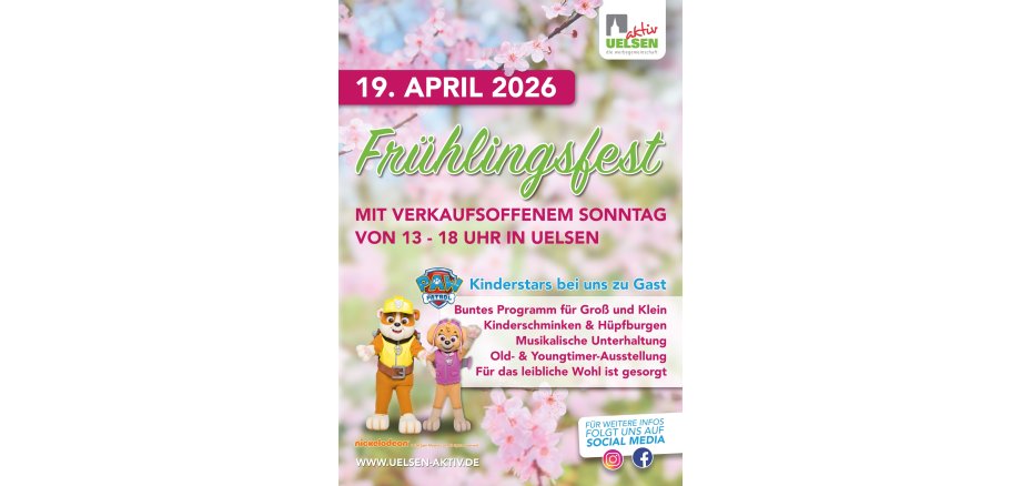 Op 19 april 2026 nodigt de reclamevereniging "Uelsen aktiv" u uit voor het grote lentefeest in Uelsen. Van 13.00 tot 18.00 uur kunnen bezoekers zich verheugen op een bewogen zondag met winkels die open zijn, een gevarieerd programma en tal van activiteiten voor het hele gezin.